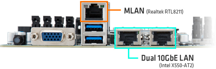 | LAN | 2 x 10GbE LAN ports ( Intel® X550-AT2), NCSI supported 1 x 10/100/1000 management LAN |