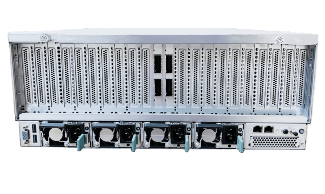 - 8 Dual-Slots für GPUs, 4 Slots für NICs, 2 Slots für Retimer